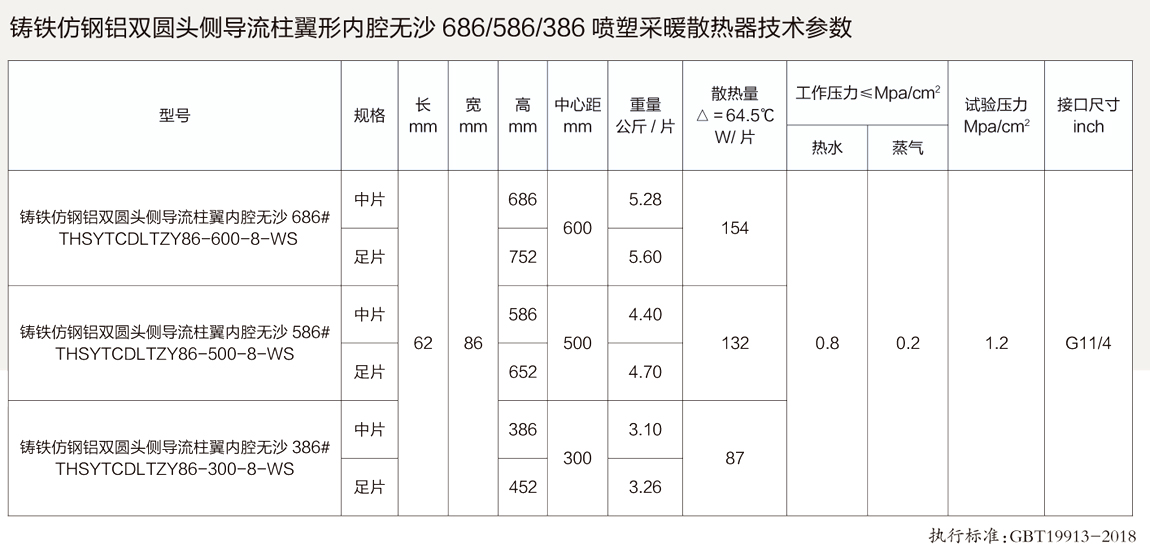 铸铁仿钢铝双圆头柱翼形686/586/386